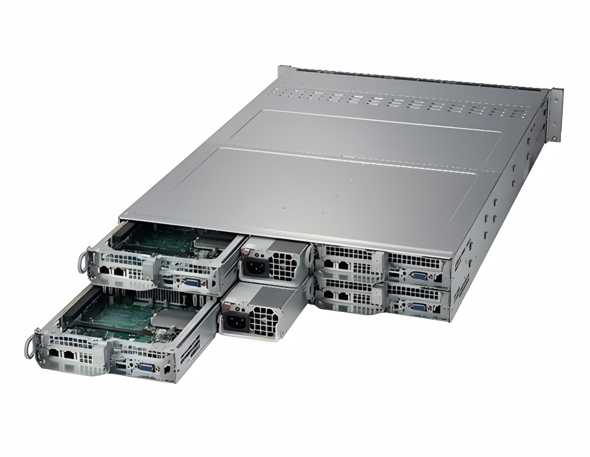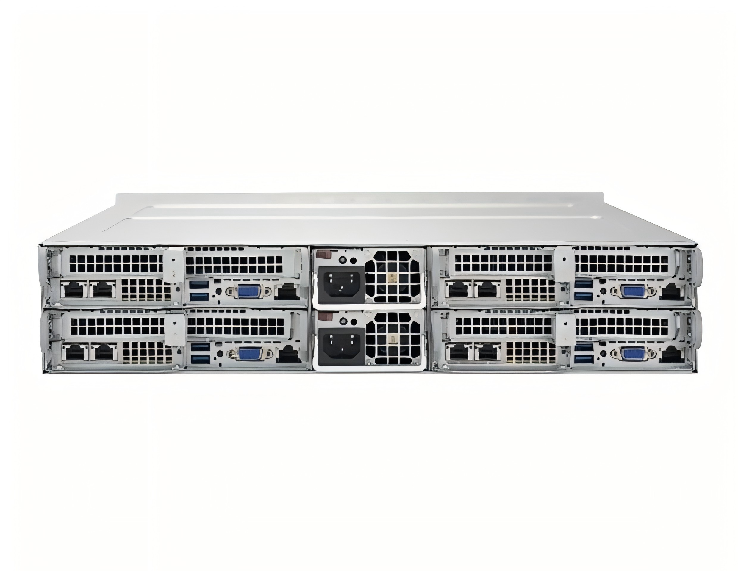 1. 高密度节点设计:2U机架式机身集成4个独立节点,大幅节省机房机柜空间,提升机房部署密度,降低机房能耗与运维管理成本。