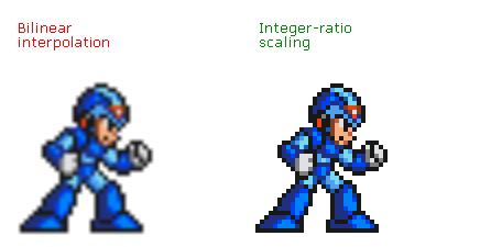 画面缩放的问题对部分游戏来说可能没多大影响,但对一些像素游戏来说,有没有整数缩放差异是很大的,如上图所示,整数缩放的画面更符合像素游戏的精髓,画质更高,而差值算法的更模糊了。