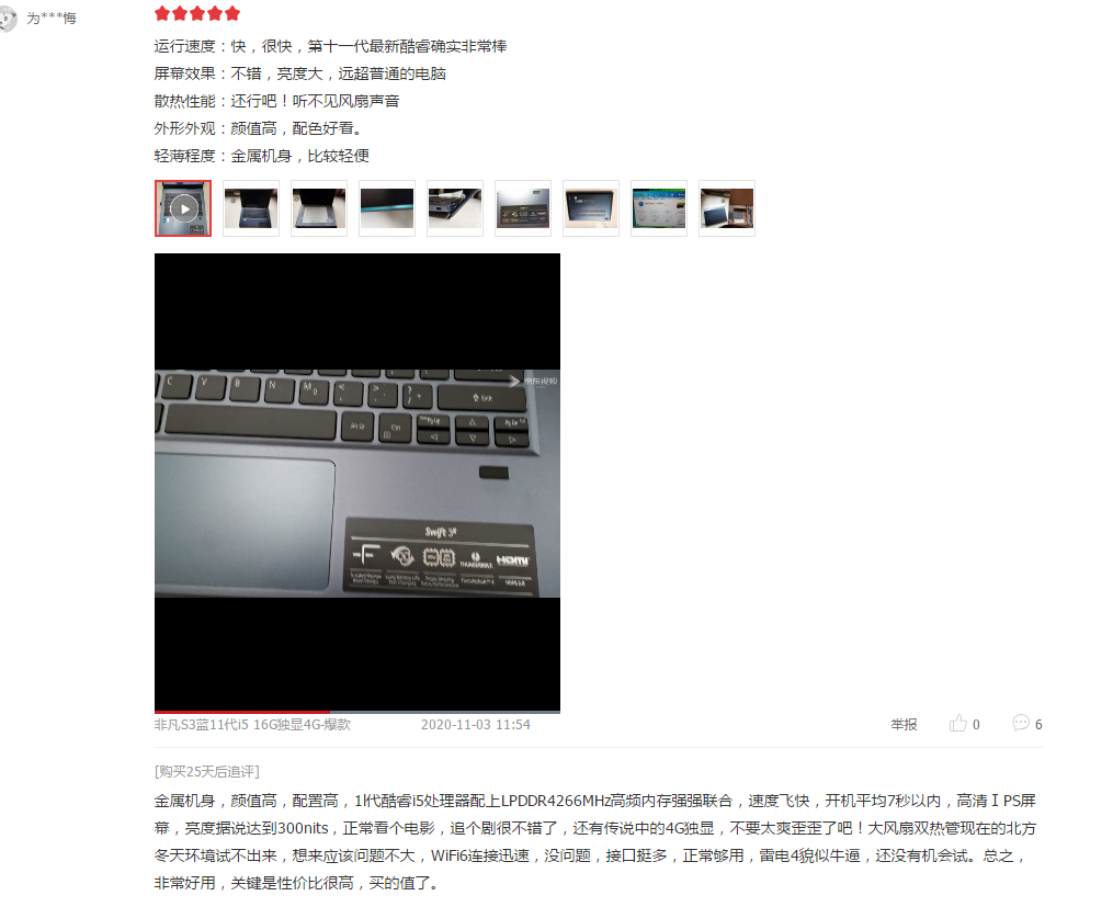 总的来说,在上市一个多月之后,玩家对EVO认证笔记本的评价已经很全面了,好评率居高不下,主要集中在十一代酷睿处理器带来的性能、续航、网络、显示及设计,基本上跟官方总结的快、长、炫三大优势吻合了。