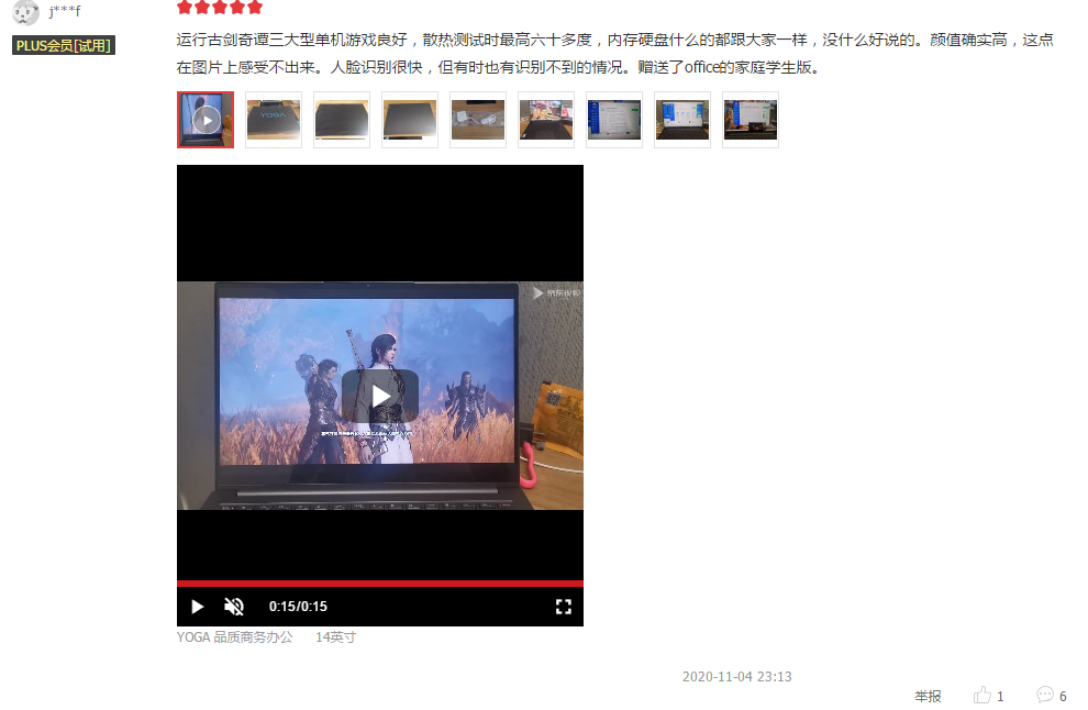 当然,续航也是这款笔记本强项,而且发热量也很小,风扇声音不大,而它的颜值甚至连买家的老婆都很认可,看样子是征服了不少女性用户的。