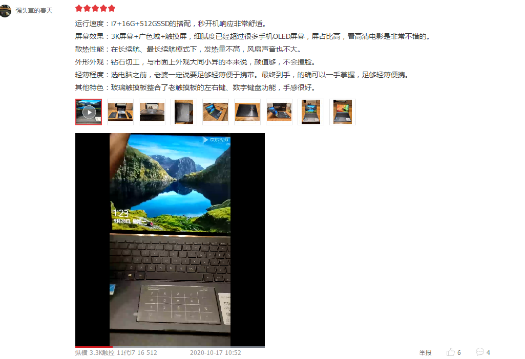 后续补充中,网友称这款EVO认证笔记本搭配高频LPDDR4X内存,开机速度快,Wi-Fi 6连接迅速,Thunderbolt4接口也非常牛。