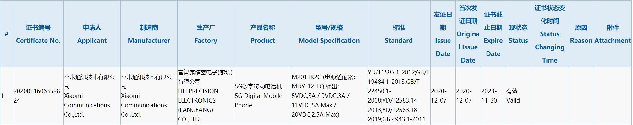 12月8日消息,小米11标准版(M2011K2C)正式获得3C认证,配备的充电器型号为MDY-12-EQ,支持55W(11V/5A)快充。